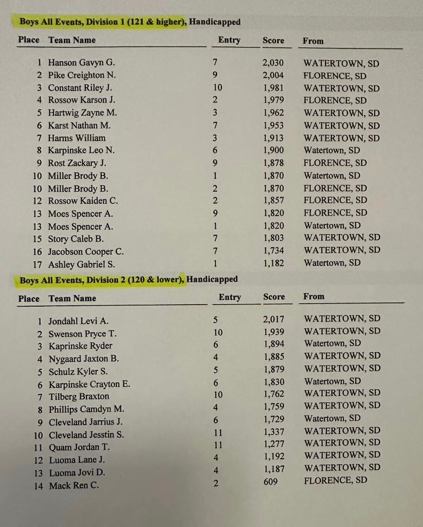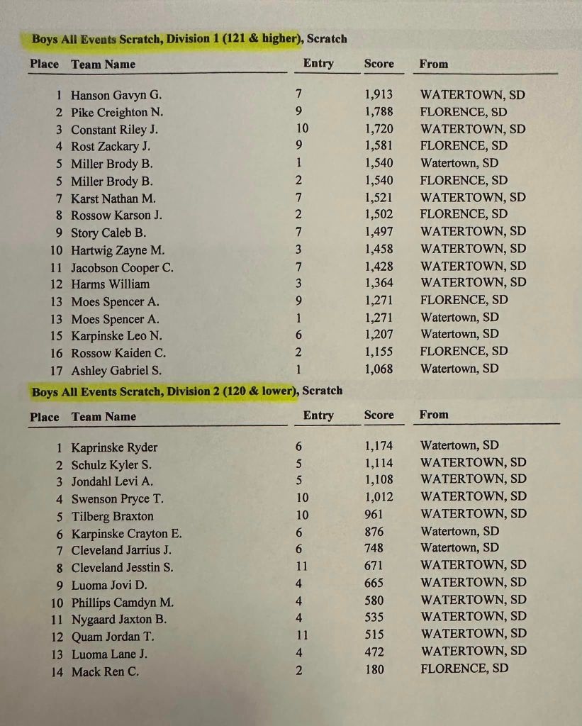Watertown USBC Youth City Tournament was held on April 2nd, 6th and 7th.