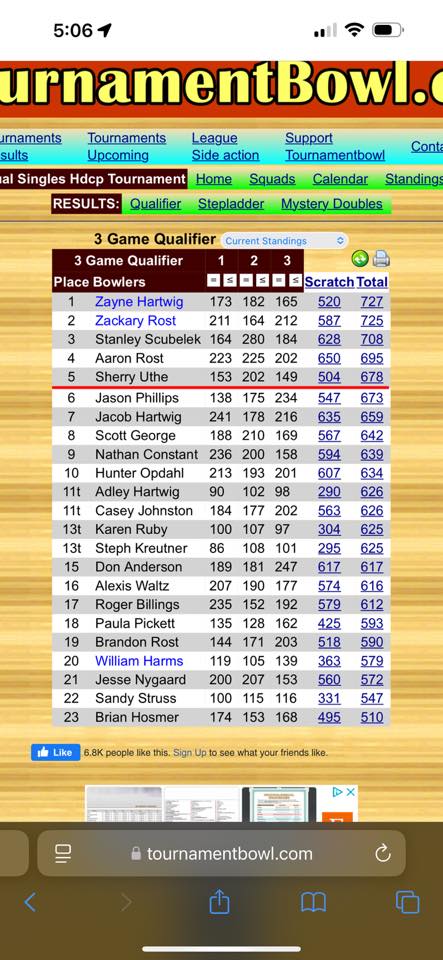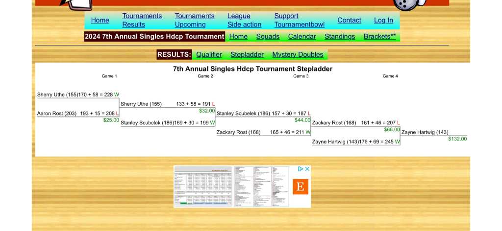 You can see all the results, mystery doubles and brackets on www.TournamentBowl.com