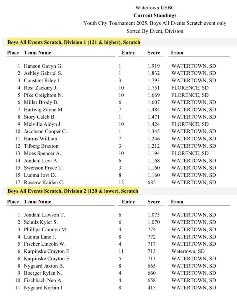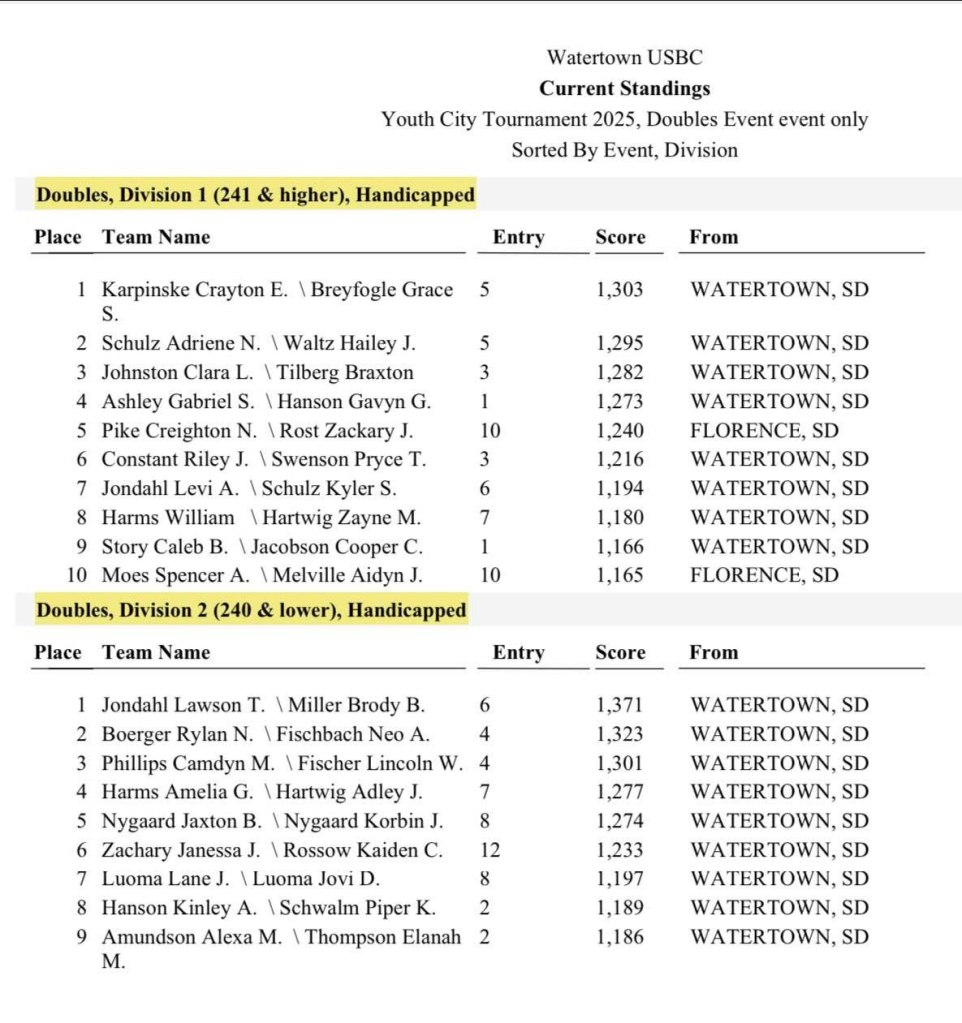 Our 2025 Youth City Tournament wrapped up today with remarkable bowling achievements. We had 39 youth bowlers participate this year and the results are attached below. We thank everyone who participated or attended to cheer on their favorite young bowlers. Congratulations to the champions in each division.