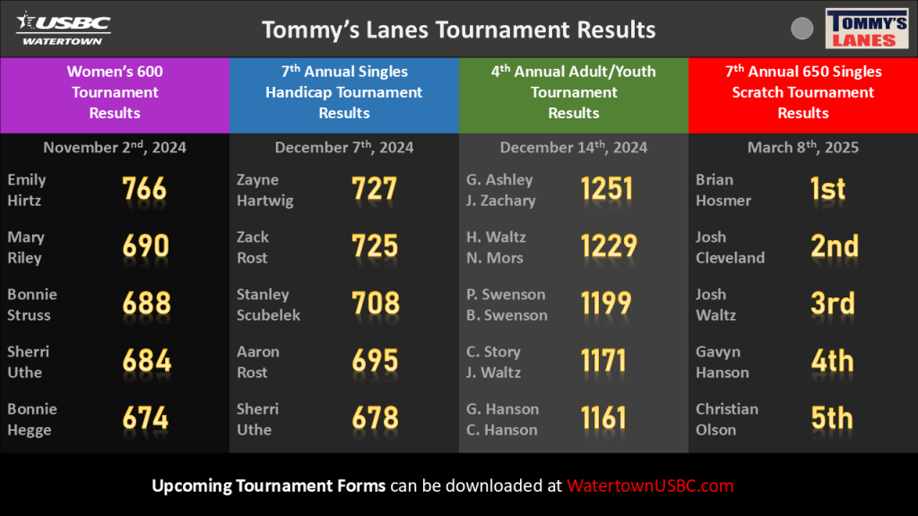 (Online Scoreboard will be updated at end of month.)